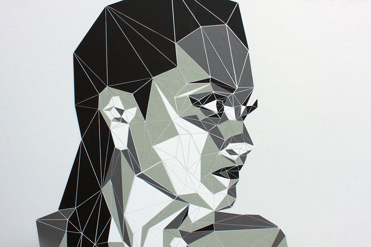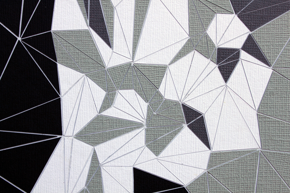 • 500+ hand-cut cardstock triangles on museum board