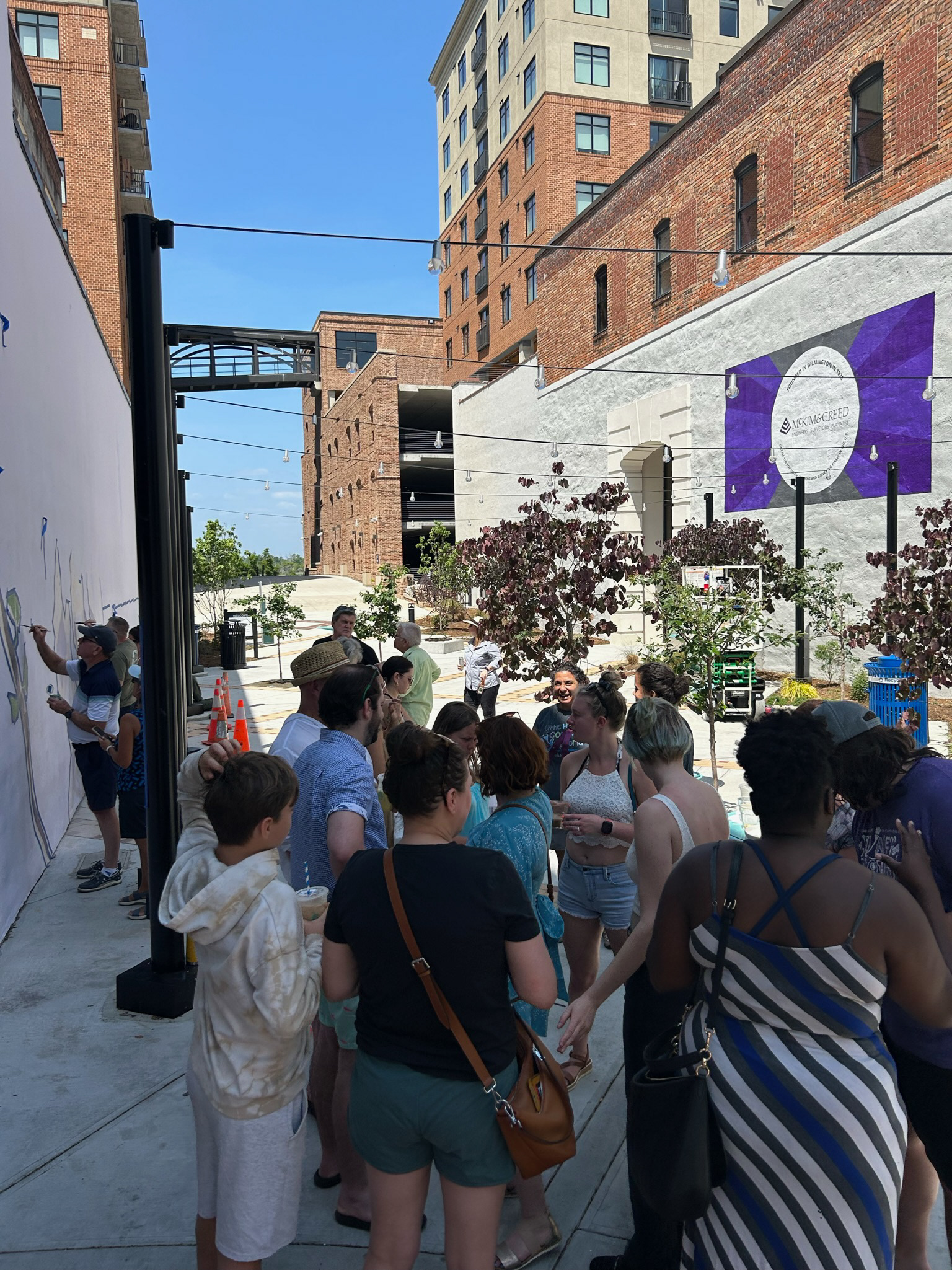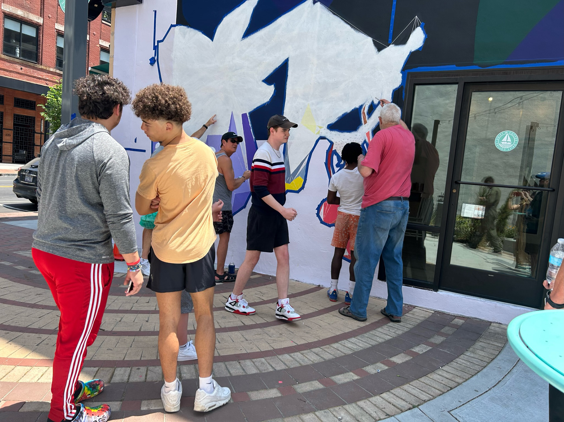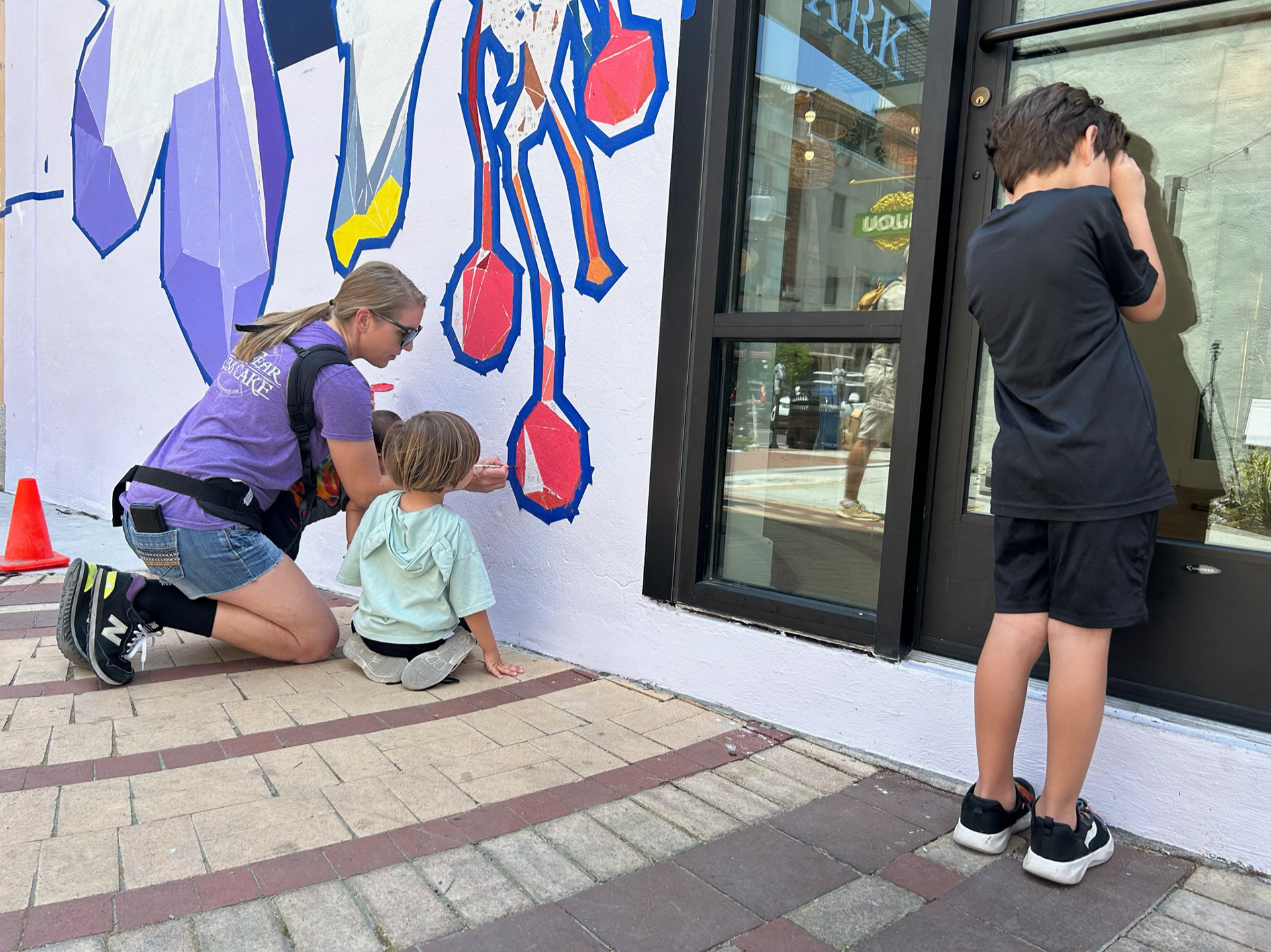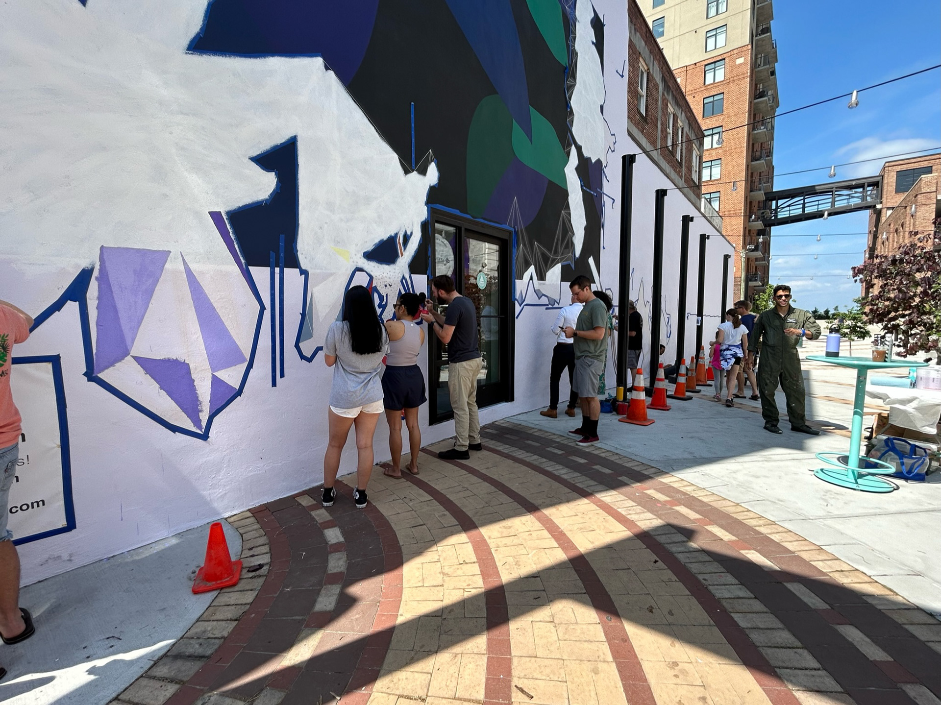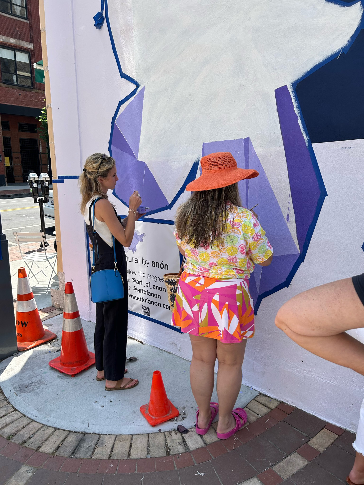 Commissioned by the Arts Council of Wilmington, North Carolina, this mural serves as the "last piece" of a newly renovated historic space in the heart of downtown Wilmington and also as downtown's first large scale mural. Originally the site for North Carolina's first movie theater, Bijou Park is now a connecting corridor linking their Main Street to the river front and a convenient, beautiful respite from the city's hustle and bustle. The narrative pays homage to the movie theater while highlighting North Carolina's natural "jewels" (Bijou means small, precious jewel), and offers a nod to this pocket park as downtown's newest "hidden gem." This massive piece had a community component in which over 500 people helped paint the mural over the course of a weekend.