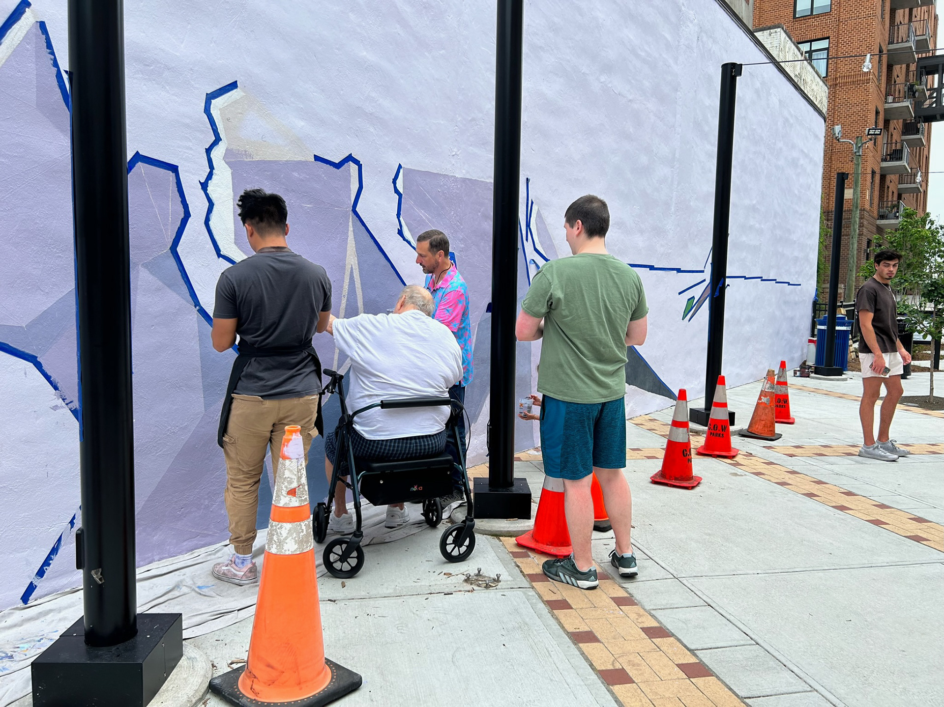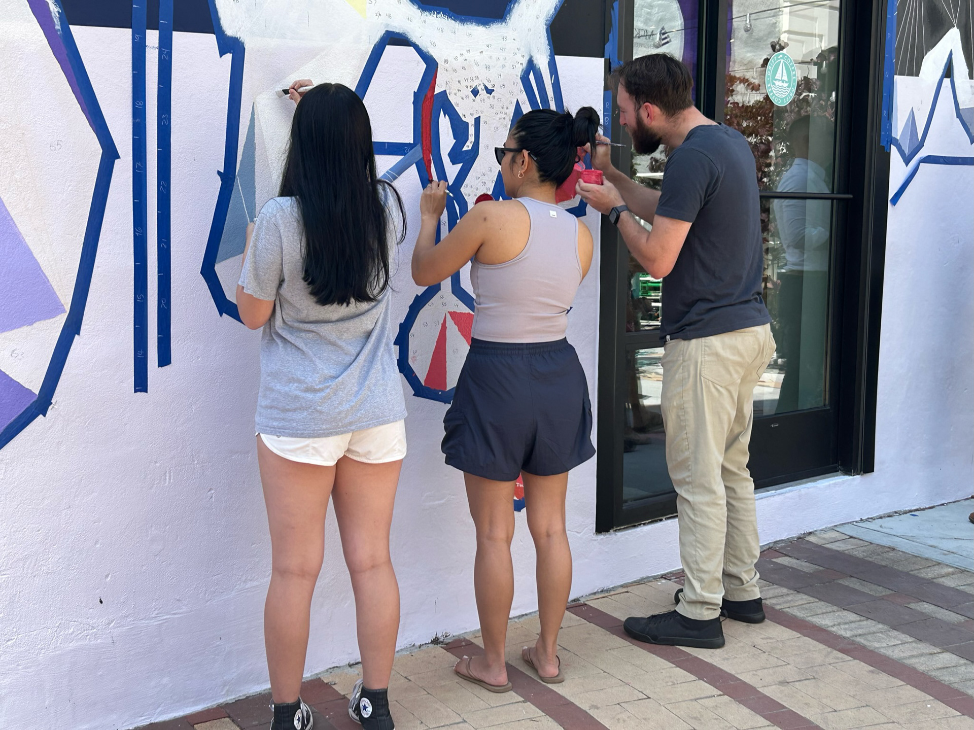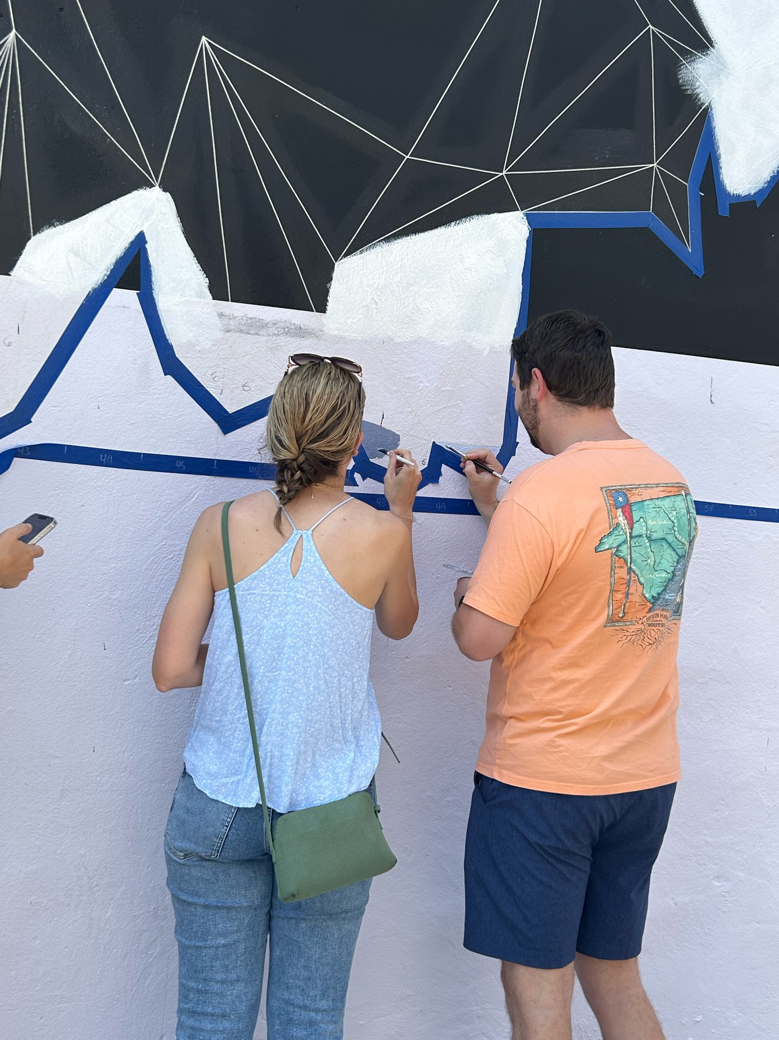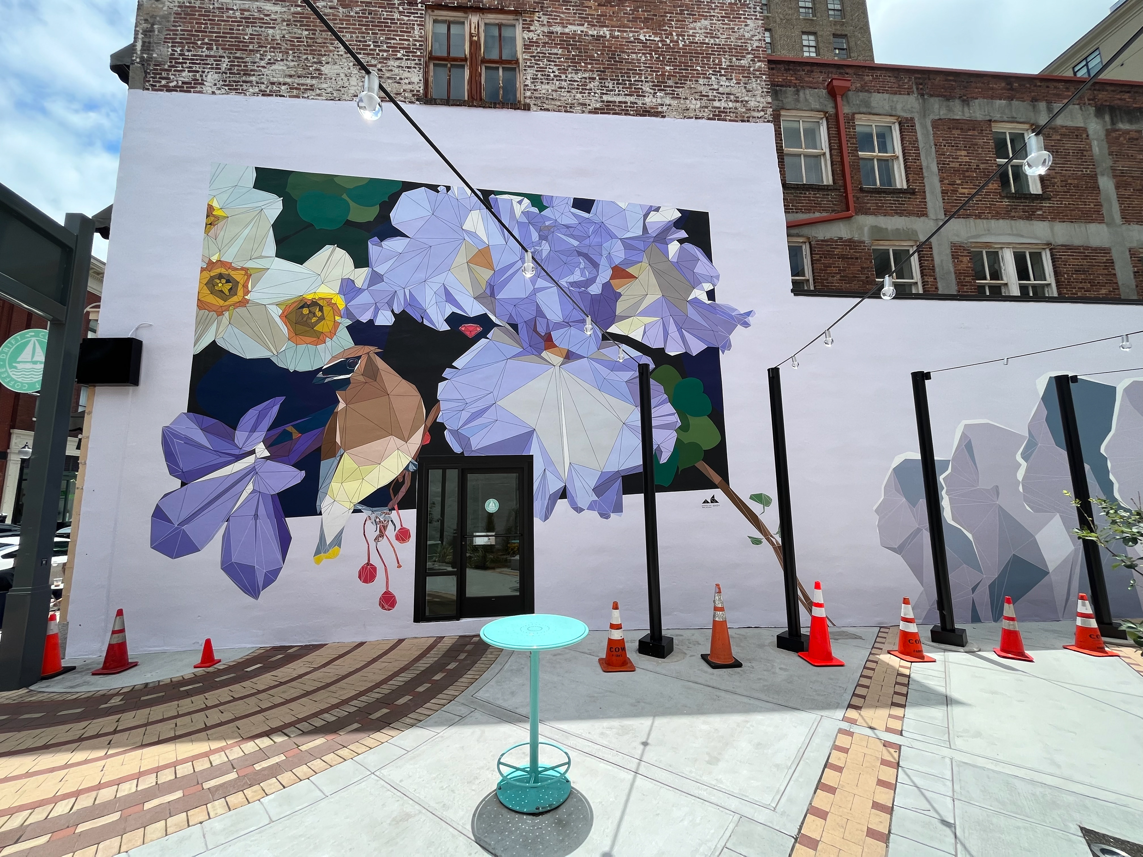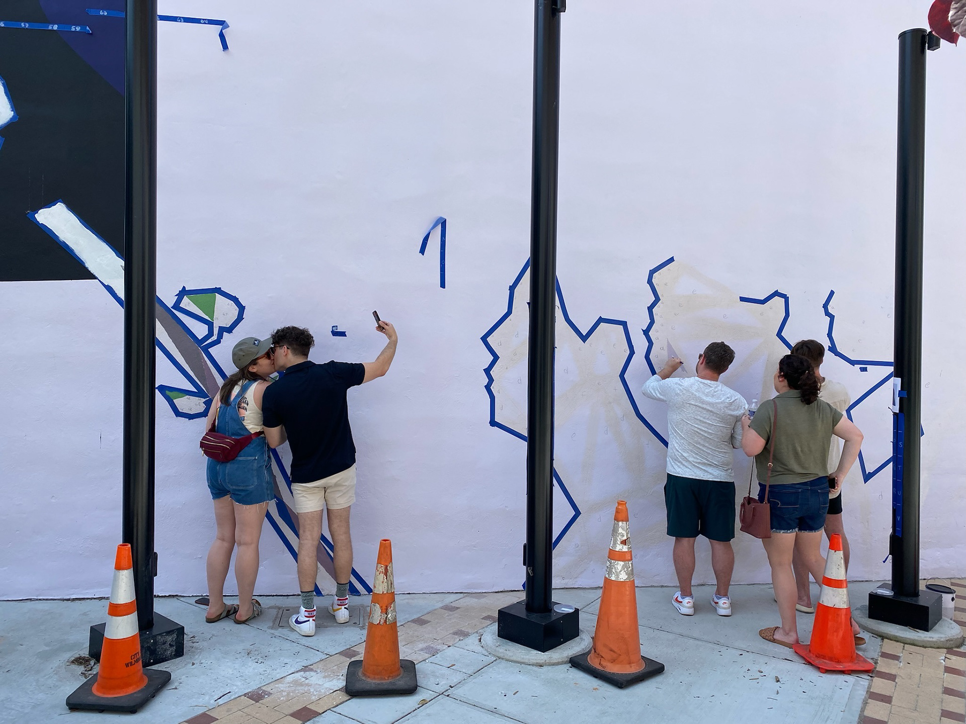 Commissioned by the Arts Council of Wilmington, North Carolina, this mural serves as the "last piece" of a newly renovated historic space in the heart of downtown Wilmington and also as downtown's first large scale mural. Originally the site for North Carolina's first movie theater, Bijou Park is now a connecting corridor linking their Main Street to the river front and a convenient, beautiful respite from the city's hustle and bustle. The narrative pays homage to the movie theater while highlighting North Carolina's natural "jewels" (Bijou means small, precious jewel), and offers a nod to this pocket park as downtown's newest "hidden gem." This massive piece had a community component in which over 500 people helped paint the mural over the course of a weekend.